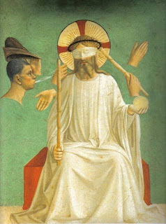 3 - Declarado, assim, Jesus réu de morte pelo conciliábulo dos ministros da sinagoga, pôs-se a turbamulta dos seus satélites a maltratá-lO às bofetadas e pancadas e cuspindo-Lhe no rosto nojentos escarros, e assim, estiveram todo o resto da noite diabolicamente entretidos, vendando-Lhe os olhos, e dizendo-Lhe por escarneo; "Tu que és profeta adivinha quem foi que te bateu?" Considera aqui o silêncio admirável e a paciência heróica deste manso Cordeiro, que, sem se queixar, tudo sofreu por nós, e dize-Lhe: